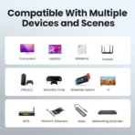 All lengths of UGREEN Cat 8 ethernet cables can support the PoE power supply function except 65ft. You don’t need additional power supply when installing a PoE camera, which is very convenient and safe.